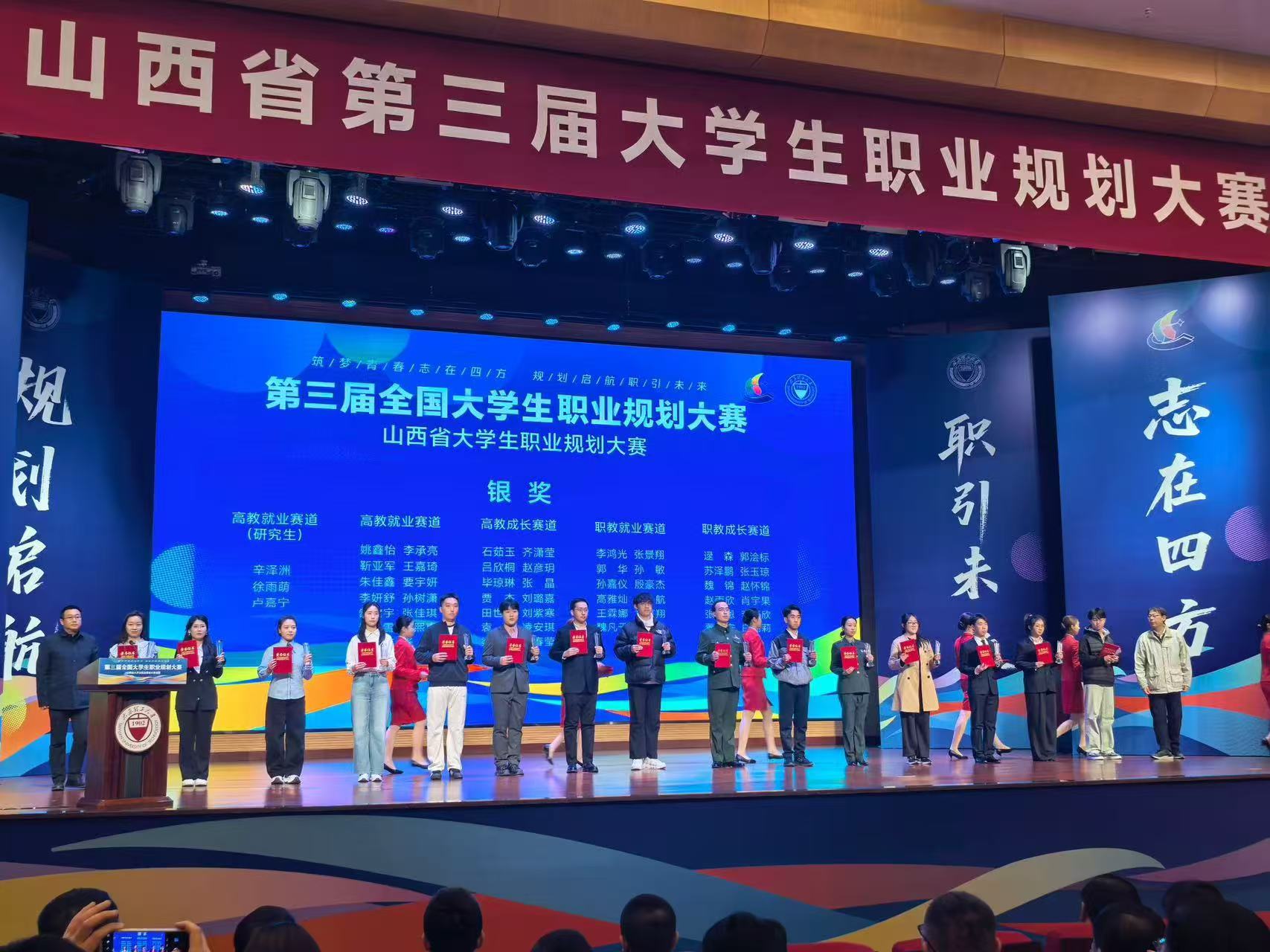 2026-03近日,山西省第三届大学生职业规划大赛落幕,我系石茹玉同学(指导老师:胡晓红)荣获高教成长赛道省级银奖,创下我校该项赛事历史最佳成绩。成绩的取得,得益于校系高度重视与精心指导,指导老师全程护航、悉心辅导。这既是石茹玉同学不懈拼搏的成果,也彰显了我系职业规划教育的扎实成效。未来,我系将持续以赛促学、以赛促教,深化生涯规划指导,助力学生明晰方向、实现高质量就业。