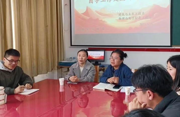 2025年3月11日,44118太阳成城和物理与电子信息工程系于弘博楼A-308成功举办团学工作交流研讨会。两系分团委书记胡晓红、李丽,以及分团委学生会部门负责人齐聚一堂。