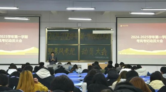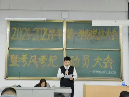 大会最后,党总支副书记韩彩志在考风考纪动员环节中,强调了优良考风考纪对学术诚信和人才培养的重要性。他要求全体同学严格遵守考试纪律,杜绝舞弊行为,共同营造公平公正的考试环境,确保期末考试真实反映学业水平,维护学术尊严。