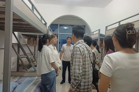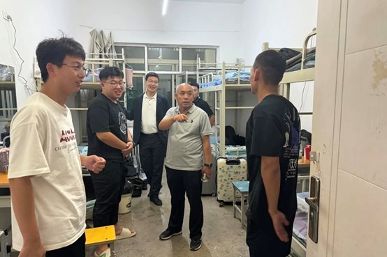 他们走进每间宿舍,与新生亲切交谈,温暖的问候拉近了彼此的距离。领导和老师们从学业规划、专业前景、生活习惯等方面为新生提供指导,全面了解学生暑假期间的情况,倾听他们的需求。新生们虽有些羞涩,但喜悦之情溢于言表,纷纷分享初入校园的感受和对未来的憧憬。