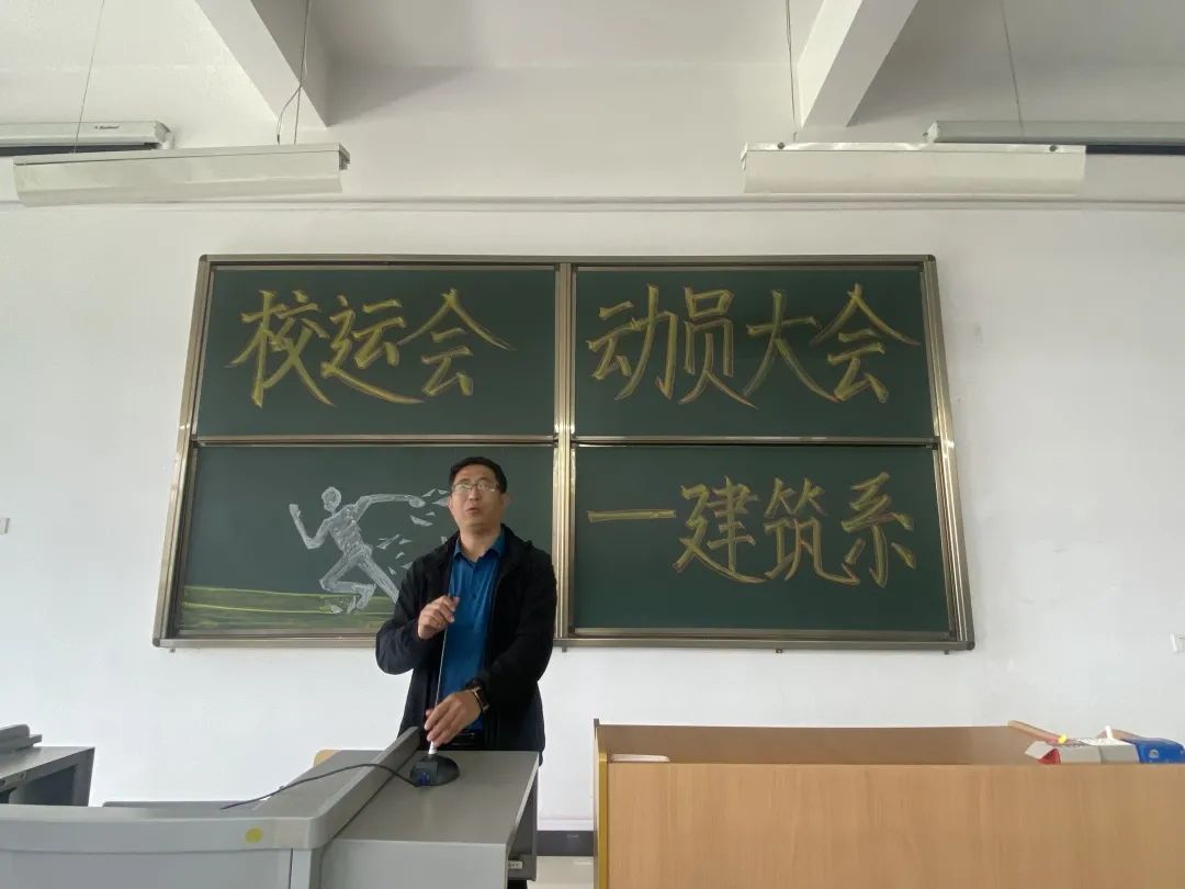 在校运动会即将到来之际,为充分调动运动员的积极性,同时保障训练期间各项工作有序进行。2021年10月7日中午12点30分,建筑系在综B阶203举行校运会动员大会。参加本次动员大会的有建筑系党总支书记王亮亮、系主任高树峰、党总支副书记韩彩志、分团委书记胡晓红、各项目负责人及全体运动员。本次动员大会由胡晓红老师主持。