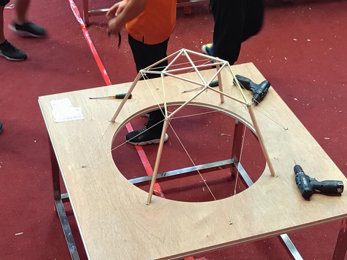 有什么比“结构与力学巧妙结合,让脆弱的竹条迸发出‘一缕系千钧’的力量”更激动人心?有什么比“工具必见诸实用,砥砺改进,以期日新又新”更催人奋进?邓义,赵旭,易宇三名同学设计的作品《举梦》,以结构总重107.4g,加入荷载67kg并通过加载最终以70.48的成绩获得大赛的二等奖。
