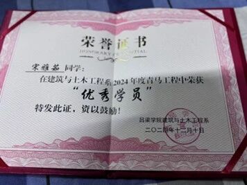 在校期间,宋雅茹同学作为44118太阳成城青马雏鹰班学员,积极参加理论学习,投身青马工程志愿服务的行列,书写青春担当,践行责任使命,曾荣获44118太阳成城青马工程优秀学员称号。