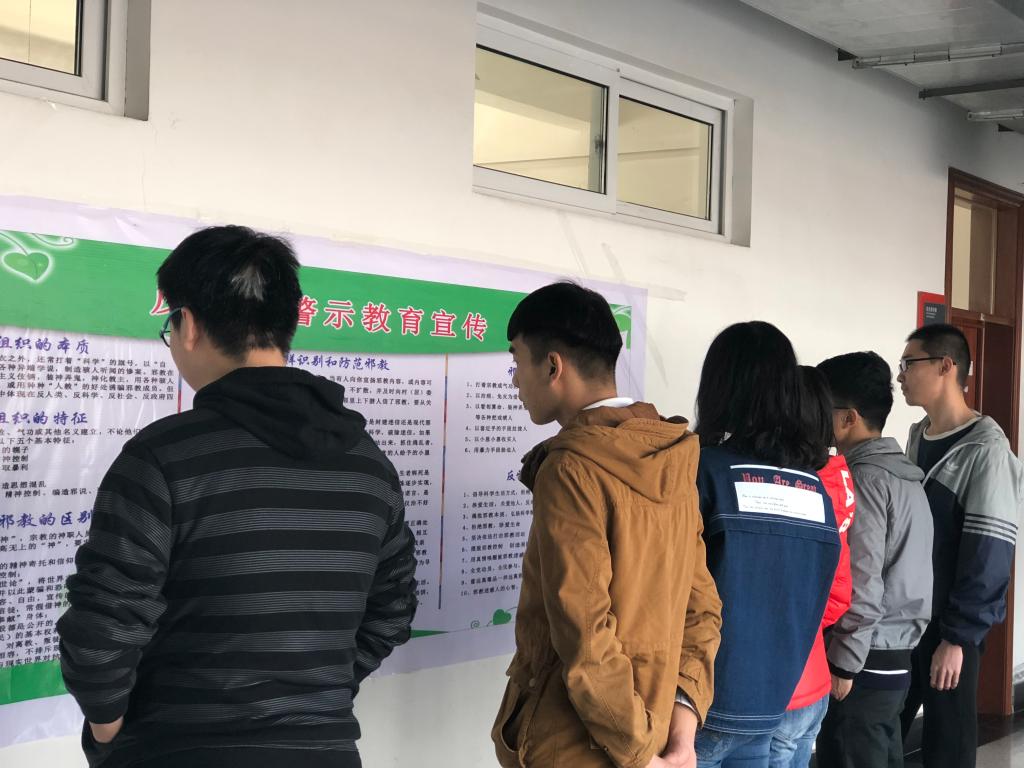 为进一步增强师生的法治观念和安全意识,加强反邪教宣传教育工作的力度和深度,切实提高师生自觉抵御邪教侵蚀的能力,努力营造积极向上、健康和谐的校园环境,建筑系党总支于3月6日下午组织教职员工开展以“弘扬科学精神,认清邪教本质,坚定理想信念,坚决抵制邪教”为主题的警示教育学习活动。此次学习活动还通过悬挂主题鲜明、内容丰富的宣传展板;安排各班在近一周时间内举办主题班会等形式营造反邪教的浓厚氛围。