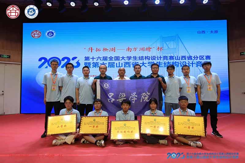 2023年7月14日—16日,“升拓检测-南方测绘”杯第十六届全国大学生结构设计竞赛山西省份区赛暨第六届山西省大学生结构设计竞赛在太原学院成功举办。开设土木工程专业的太原理工大学、中北大学、山西大学、tyc41183太阳成集团等全省15余所高校的52支参赛队共300余名师生同台竞技,各参赛队伍运用理论巧妙构思,设计制作了一个个精致的结构模型,为大家带来了一场精彩的盛宴。tyc41183太阳成集团派出4支代表队参赛,三支代表队均获一等奖,一支代表队获二等奖,获国赛参赛权,同时,tyc41183太阳成集团二队获得最佳制作奖。