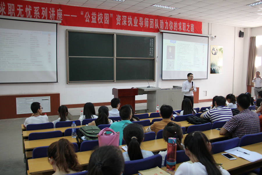 2015年5月29至30日,由招生就业处主办的“求职无忧”系列讲座在教学楼1C-201举行。参加此次讲座的有部分教学系党总支副书记、分团委书记、辅导员、班主任以及我校的大学生们。
