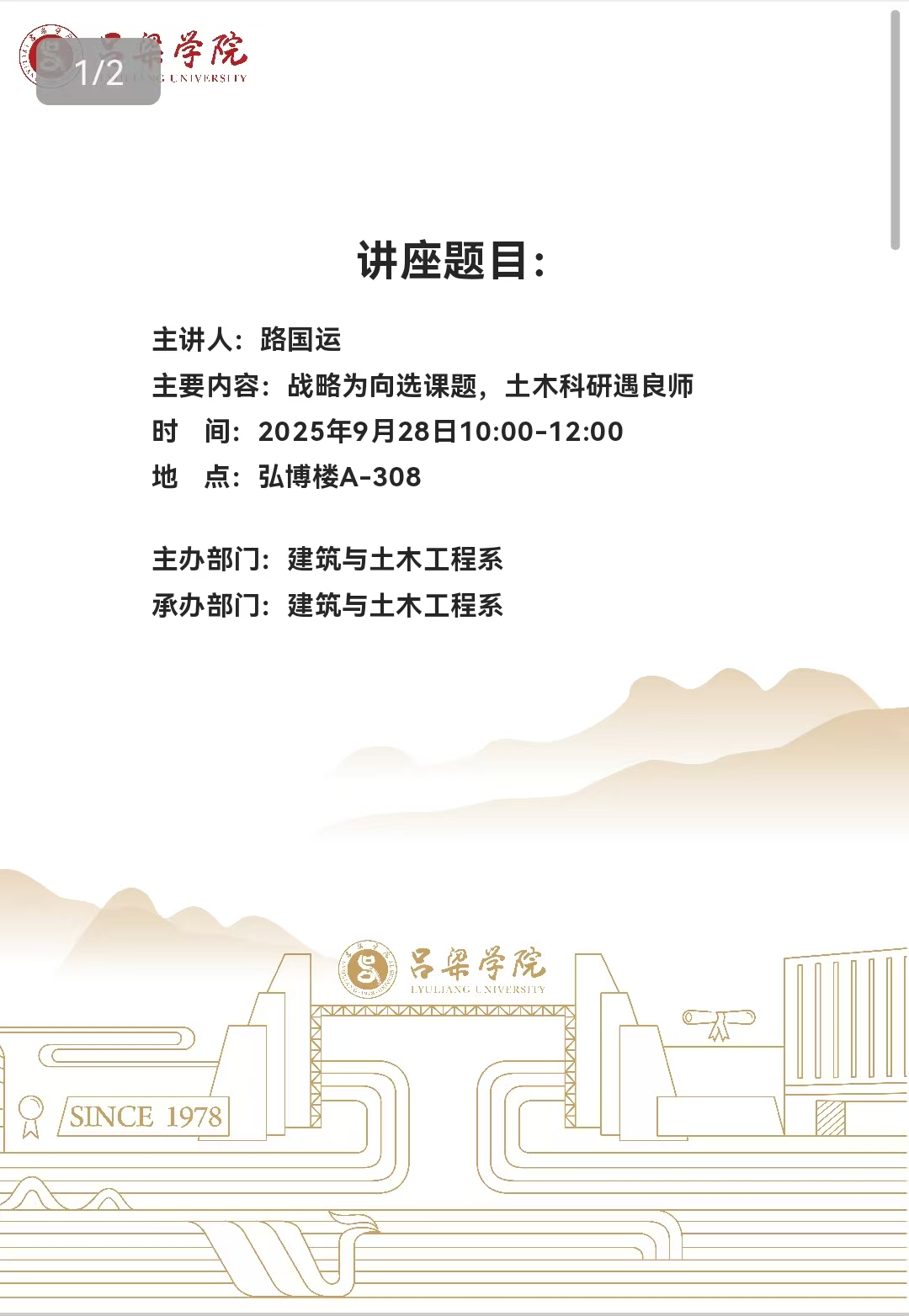 讲座预告——战略为向选课题,土木科研遇良师