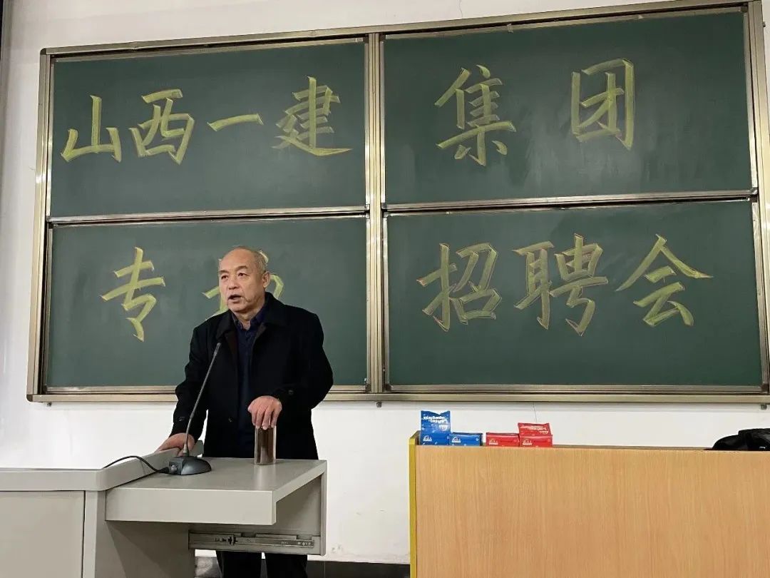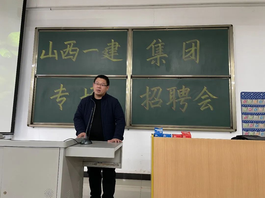 会议第二项,负责人讲话。负责人首先讲到建筑系对山西一建集团与tyc41183太阳成集团的历史渊源,随后通过一则宣传片让同学们了解公司的基本概况。接着,负责人从招聘专业、工作地点、薪资待遇等同学们关注的方面进行详细地讲述,并表示会根据大家的选择方向提供不同的发展机会。