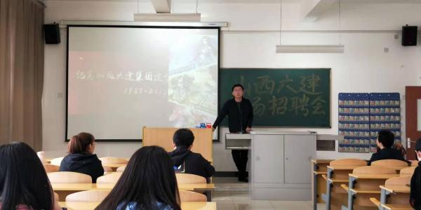 首先,山西六建集团招聘负责人薛雨泽组织学生们观看招聘宣传视频,使学生们能更加深入的了解公司的历史成就及未来规划,对六建集团有了更深的认识。